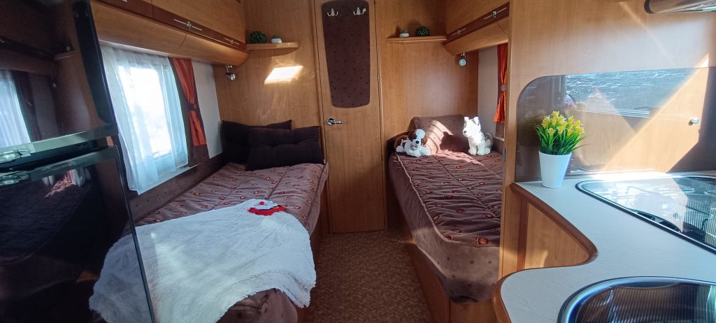 • ✔️ Camas gemelas en la parte trasera, con posibilidad de unión para mayor comodidad.