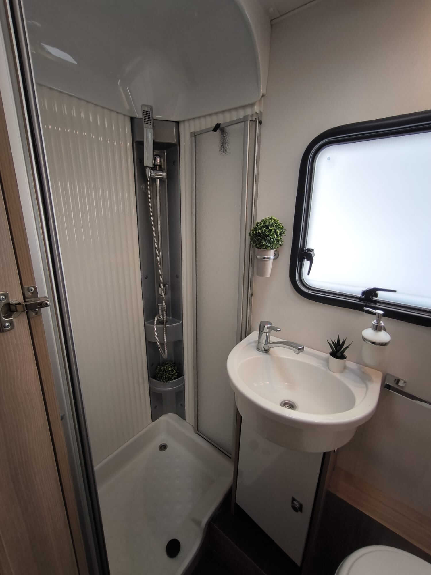 Esto significa que mientras una persona se ducha, otra puede usar el lavabo sin molestias. Algo poco común en autocaravanas y muy valorado en viajes en familia o en grupo.
