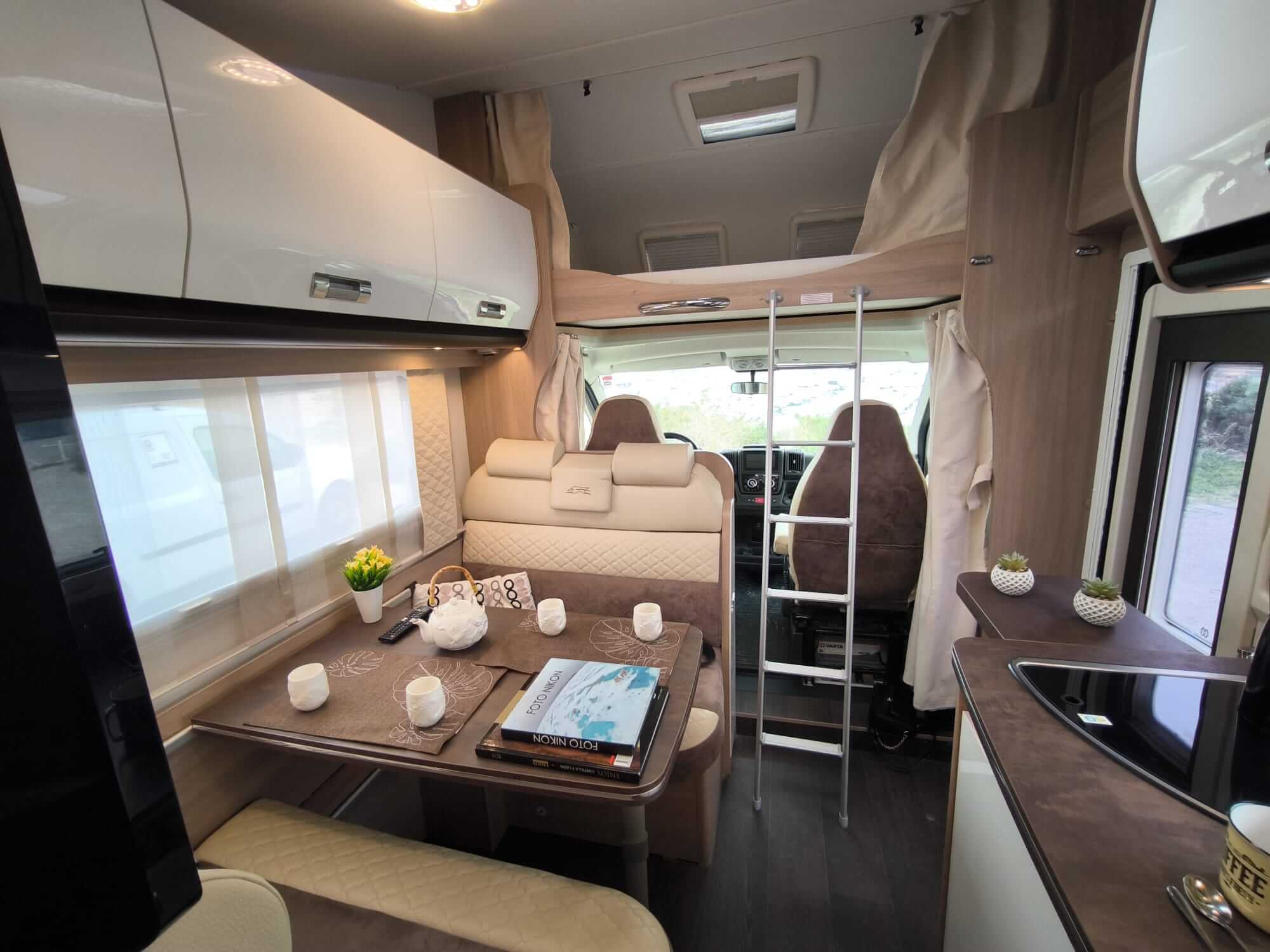 Homologada para 5 personas viajando y durmiendo. Salón enfrentado y camas confortables.